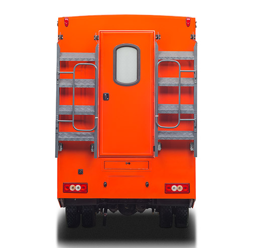 四轮驱动、动力转向、排气制动、断气制动、可调方向盘、空调、多媒体音响、ABS制动行驶记录仪兼北斗系统接口、遥控中控锁、电动玻璃升降器、车身喷涂防火标识、双侧液压电动展开。