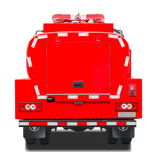 二:配有消防水炮、专用消防泵、夹心取力器,罐体采用4mm钢板、内设有横向防波板,罐体阴极电泳经防腐处理,远程电子油门、水温表、转速表,车身配备多个储物箱。